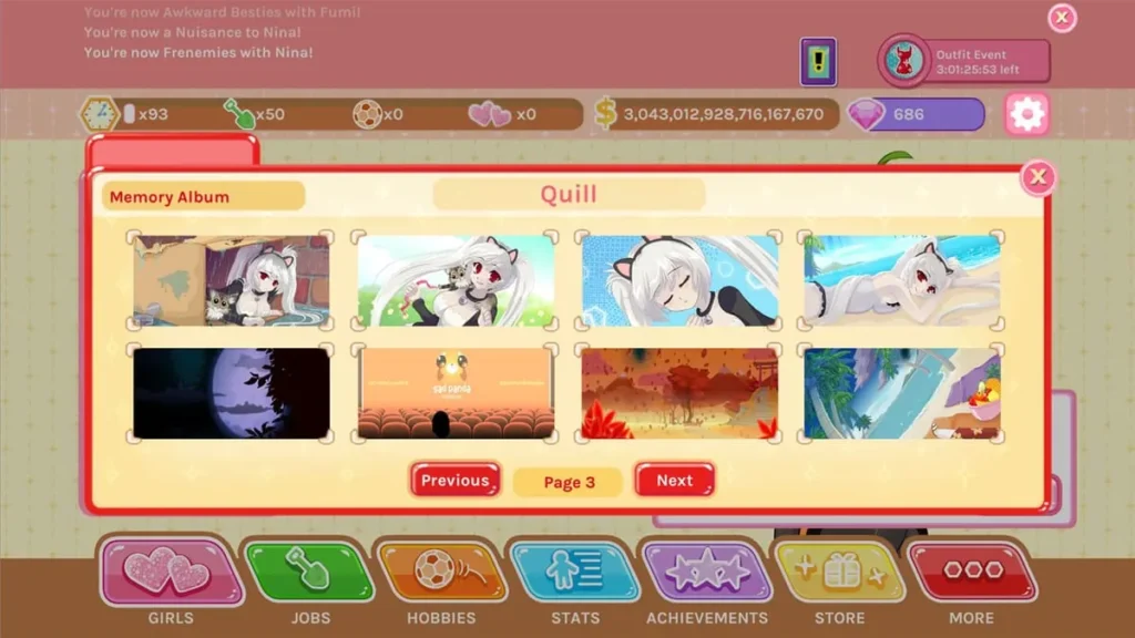 - The Girl Tabs: Along the top or side, you’ll see icons for all the characters you’ve unlocked. Clicking one opens your relationship with her, showing her Affection meter, your current conversation, and the gifts/dates available.