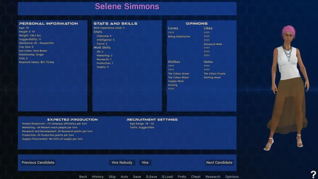 | **Intelligence & Skill** | Intelligence, Work Ethic | Enables the subject to become a capable lab assistant or business manager, aiding your empire. |